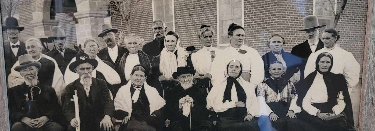 This image was taken in 1908 in Snowflake, Arizona. It is titled “Old Folks Day” and these people are sitting in front of the Snowflake LDS Academy.