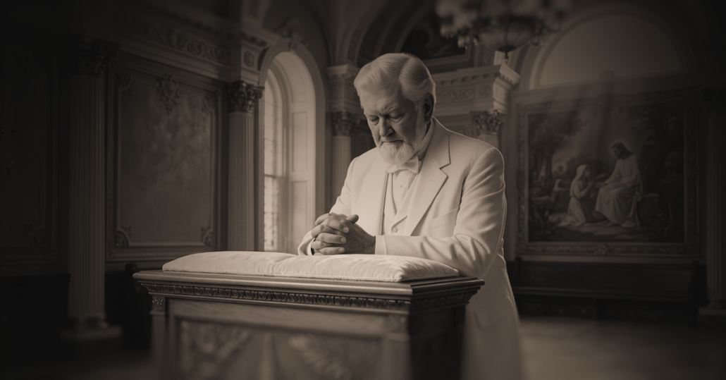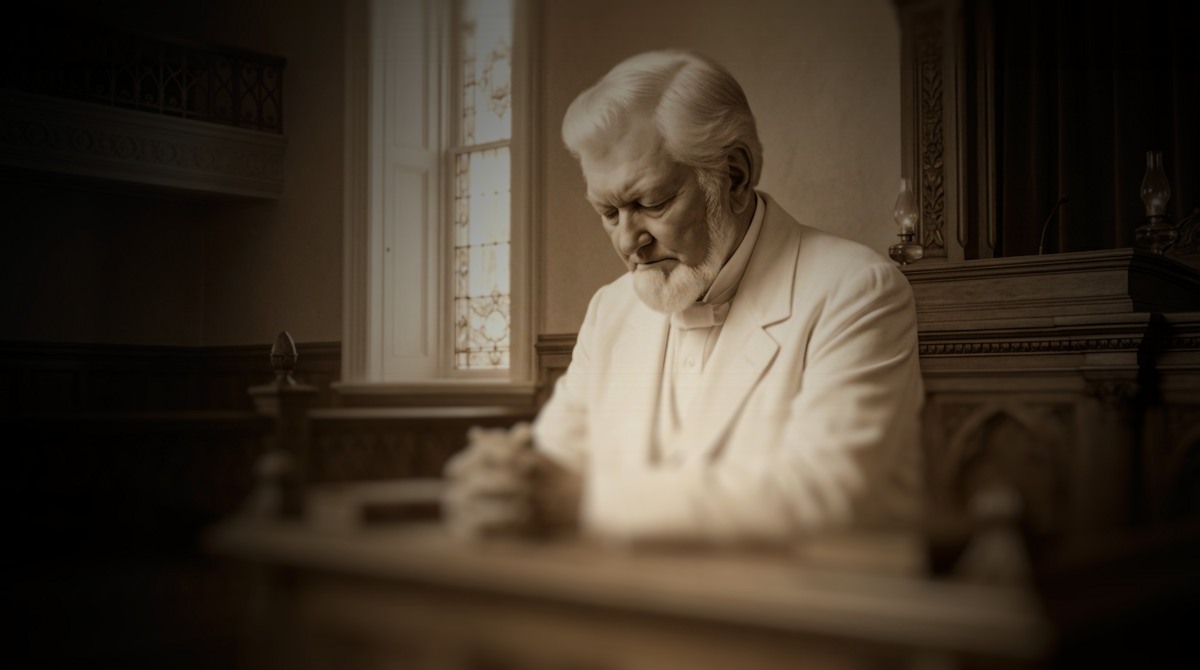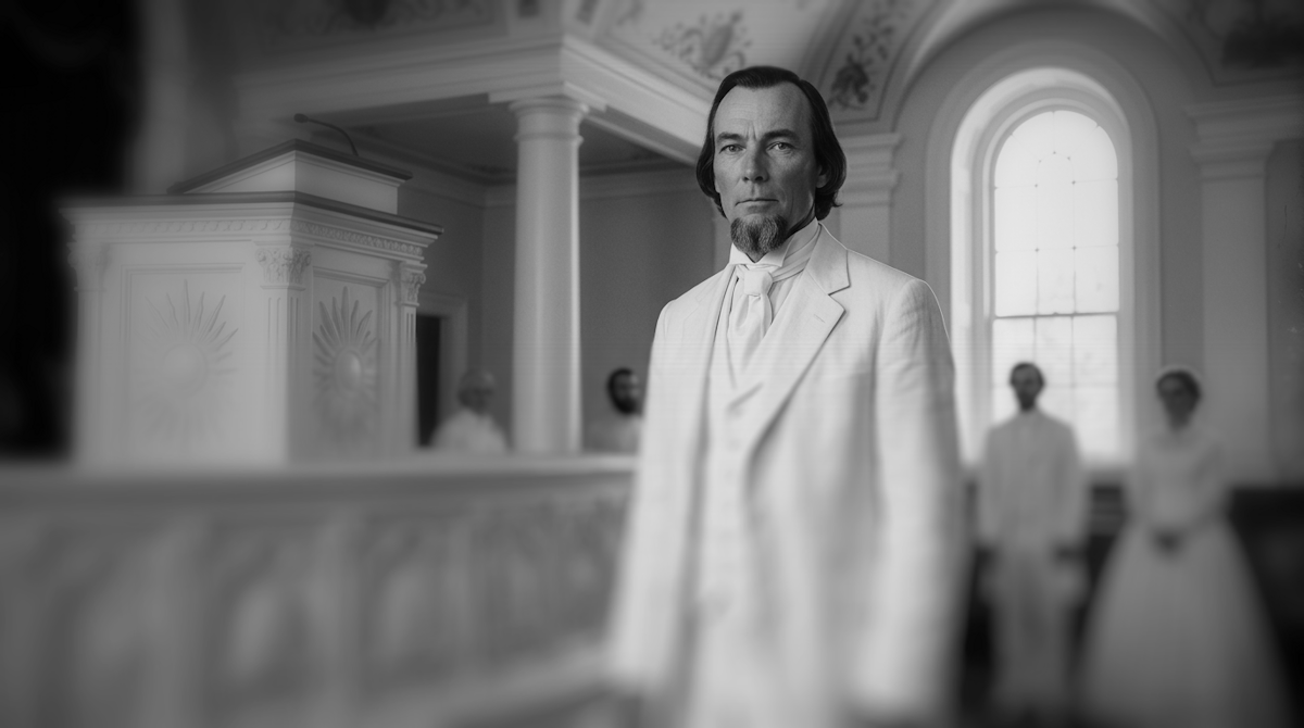 An AI-generated image depicting Edwin R. Westover in the St. George Temple