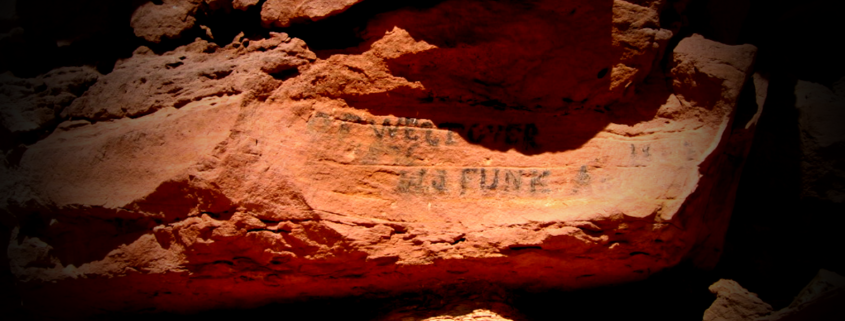 Just west of a place out in the middle of nowhere on the Utah/Arizona border called Fort Pearce is a old pioneer trail. In this remote place on this mostly forgotten trail are rocks where at a time in the old west travelers left their mark on red stone in wagon wheel grease.